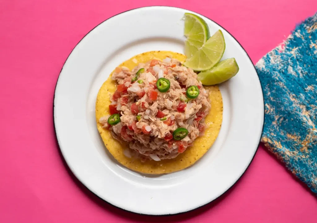 Chalupas de atún Ingredientes 1 lata de Atún Tesoro del Mar trocitos en aceite 140g 1 paquete de tortillas tostadas